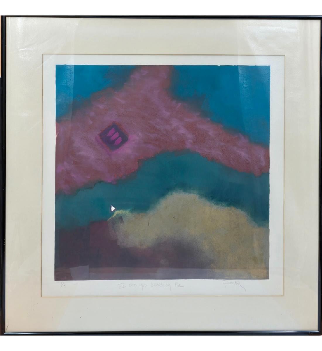 1/1 Abstract Lithograph Titled " I SEE YOU WATCHING ME" Signed Park Possible Charolette Park 1918-2010. Frame Measure 25" X 25". Provenance: One Person Private Estate Central Florida.