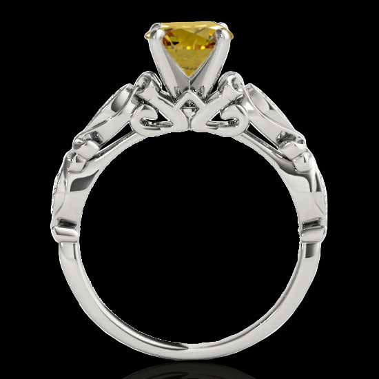 REF-156T4M -34637 ---- 1.1 CTW Certified Si Intense Yellow Diamond Solitaire Antique Ring 10K White Gold ---- Luxury Designer Brand Ring Appraised at $10,300 Certificate Number US34637 10k White gold, Ring Size is 7, Ring measuring approx. Uniform, weighing in total approx. 5 grams. Made in the USA and is stamped 10k, Main stone 1 carat total weight containing 1 pieces of Intense Fancy Yellow color with SI quality Round shape cut Diamond , Stone #2 0.1 carat total weight containing 8 pieces of H-I color with VS/SI quality Round shape cut Diamond
