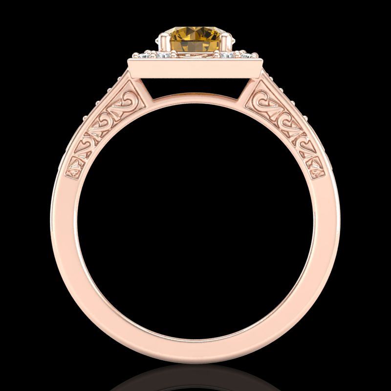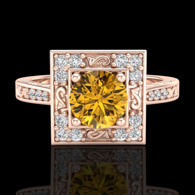 REF-140Y9K -38156 ---- 1.1 CTW Intense Fancy Yellow Diamond Engagement Art Deco Ring 18K Rose Gold ---- Luxury Designer Brand Ring Appraised at $9,300 Certificate Number US38156 18k Rose gold, Ring Size is 7, Ring measuring approx. Uniform, weighing in total approx. 8 grams. Made in the USA and is stamped 18k, Main stone 0.75 carat total weight containing 1 pieces of Intense Fancy Yellow color with SI quality Round shape cut Diamond , Stone #2 0.35 carat total weight containing 18 pieces of H-I color with VS/SI quality Round shape cut Diamond