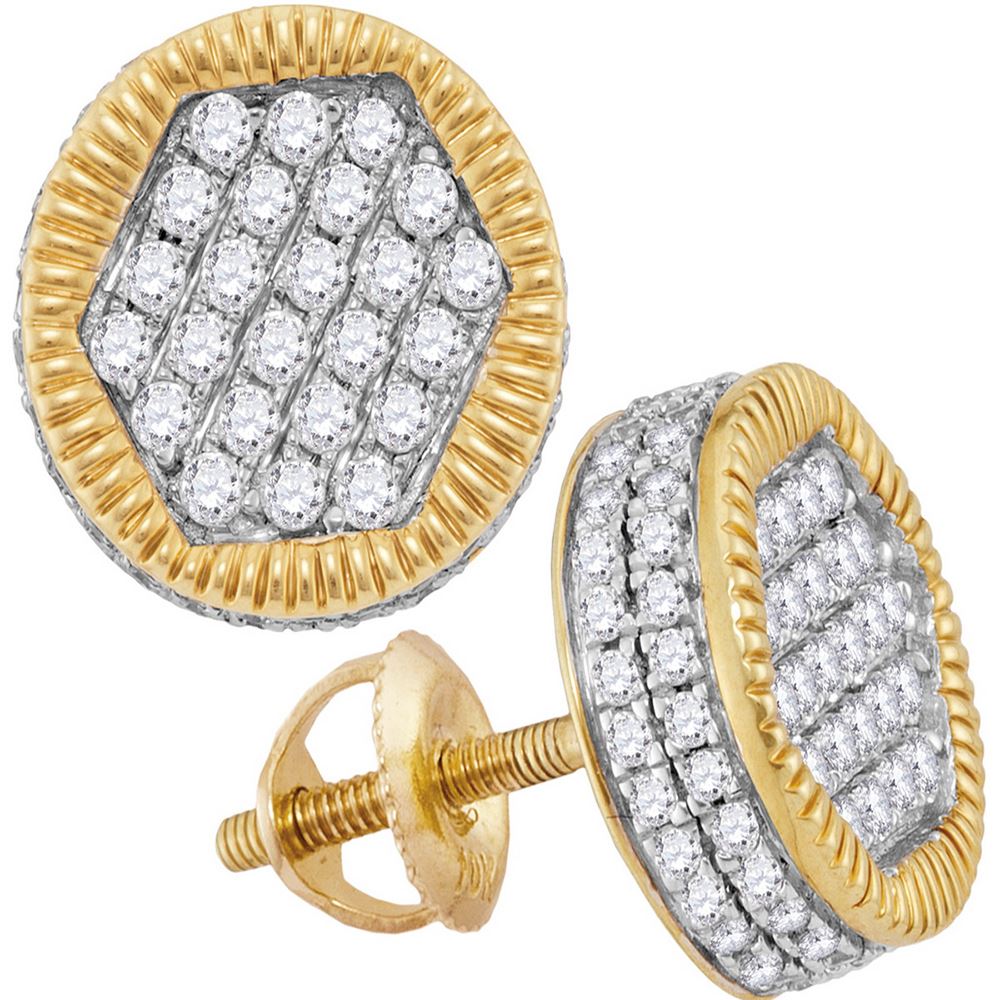 REF-67Y4X- SKU: GD116586 ---- 1.1 CTW Mens Diamond Circle 3D Cluster Stud Earrings 10KT Yellow Gold
