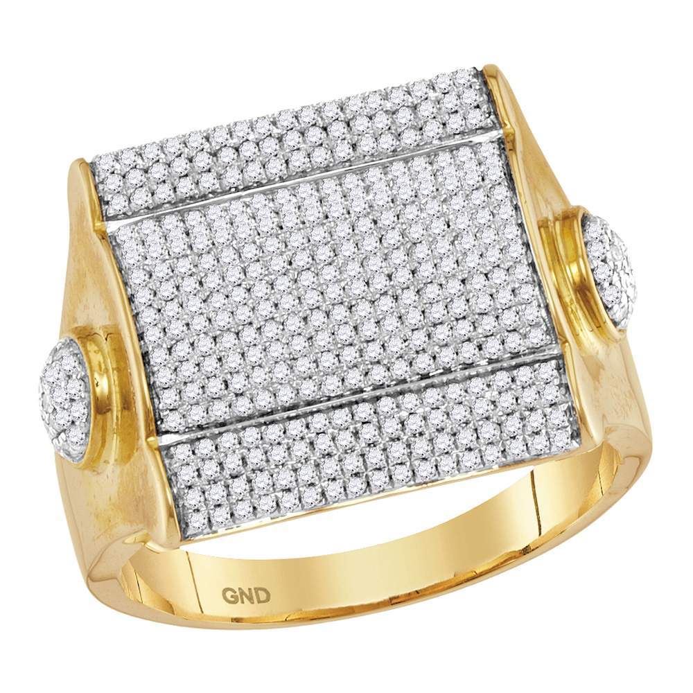 REF-112Y5X- SKU: GD42169 ---- 1.1 CTW Mens Diamond Square Cluster Ring 10KT Yellow Gold