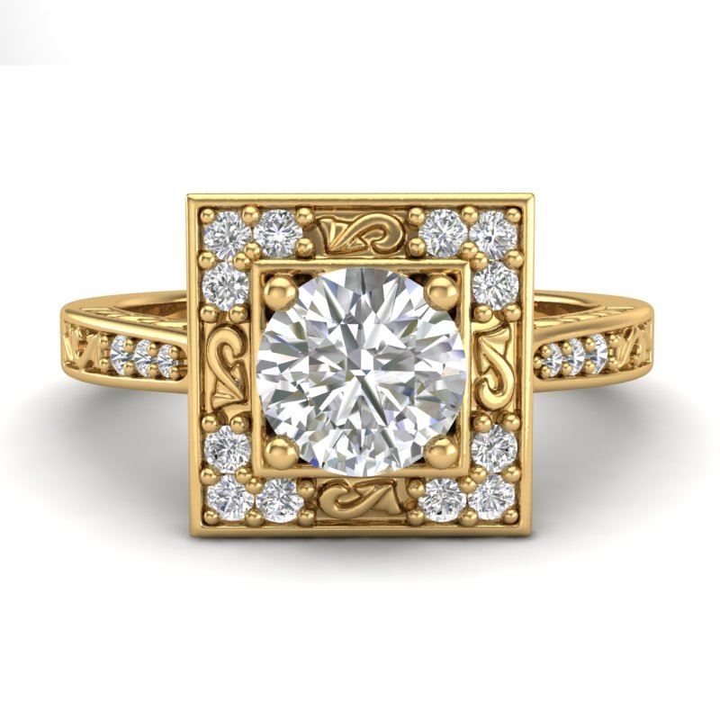 REF-180W2F -37267 ---- 1.1 CTW VS/SI Diamond Art Deco Ring 18K Yellow Gold ---- Luxury Designer Brand Ring Appraised at $10,900 Certificate Number US37267 18k Yellow gold, Ring Size is 7, Ring measuring approx. Uniform, weighing in total approx. 4.6 grams. Made in the USA and is stamped 18k, Main stone 0.75 carat total weight containing 1 pieces of H-J color with VS/SI quality Round shape cut Diamond , Stone #2 0.35 carat total weight containing 18 pieces of H-I color with VS/SI quality Round shape cut Diamond