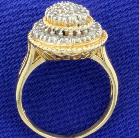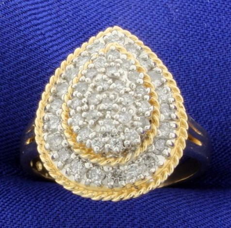 In 10K yellow gold, it contains twenty one .03ct & twenty four .02ct round diamonds. Size 10 3/4 6.9g