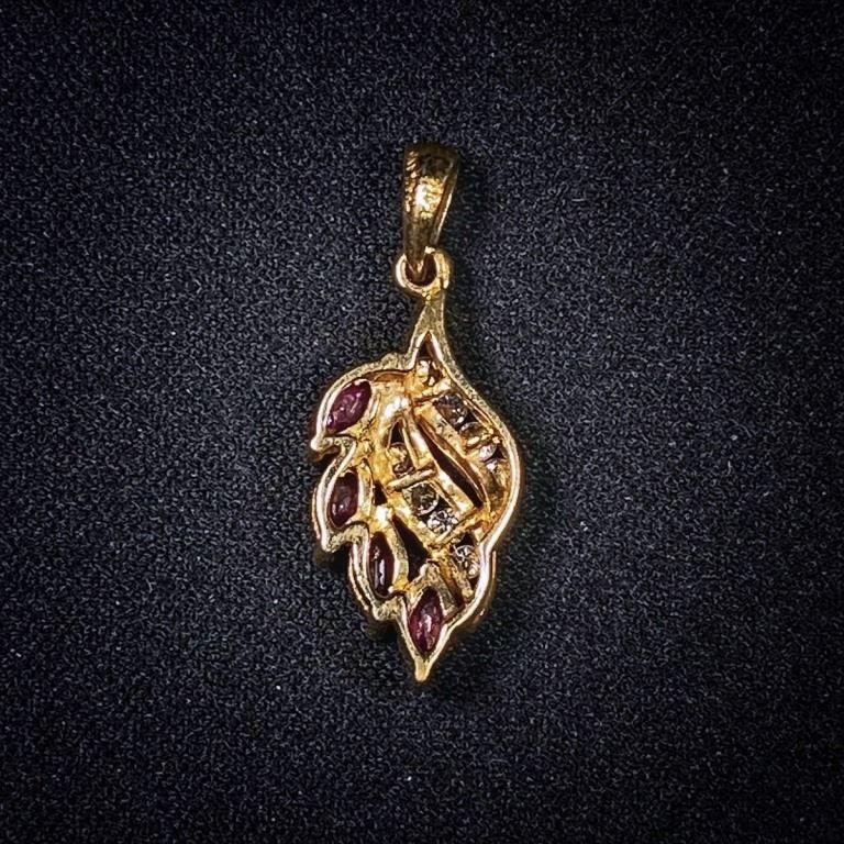 1.1 DWT 14 KT Gold Pendant w/ Dimds & Gems