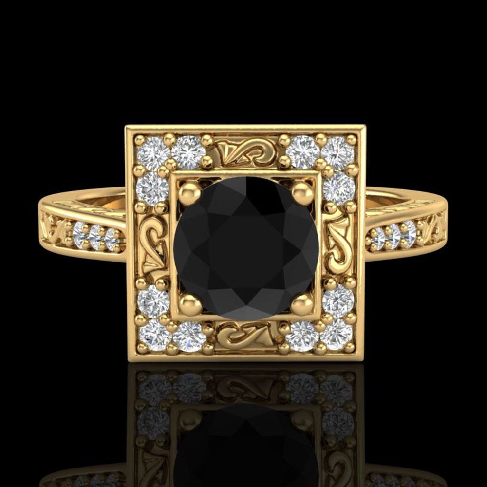 REF-87K3Y - SKU: 38152 ---- 1.1 ctw Fancy Black Diamond Engagment Art Deco Ring 18k Yellow Gold