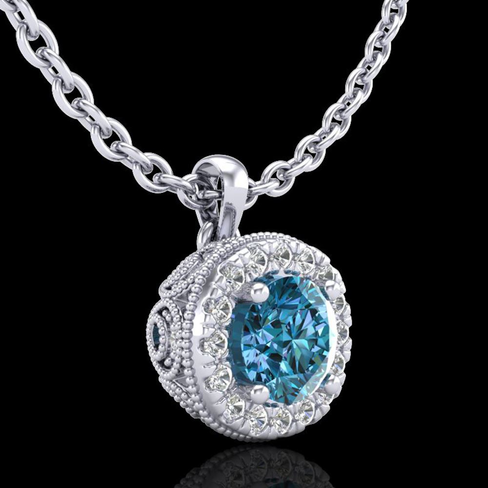 REF-136R4K - SKU: 37999 ---- 1.1 ctw Fancy Intense Blue Diamond Art Deco Necklace 18k White Gold