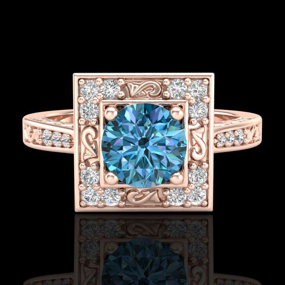 REF-169R3K - SKU: 38154 ---- 1.1 ctw Intense Blue Diamond Engagment Art Deco Ring 18k Rose Gold