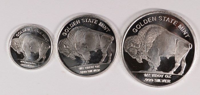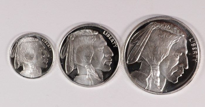 1/10, 1/4 AND 1/2 OUNCE BUFFALO/INDIAN .999 SILVER ROUNDS