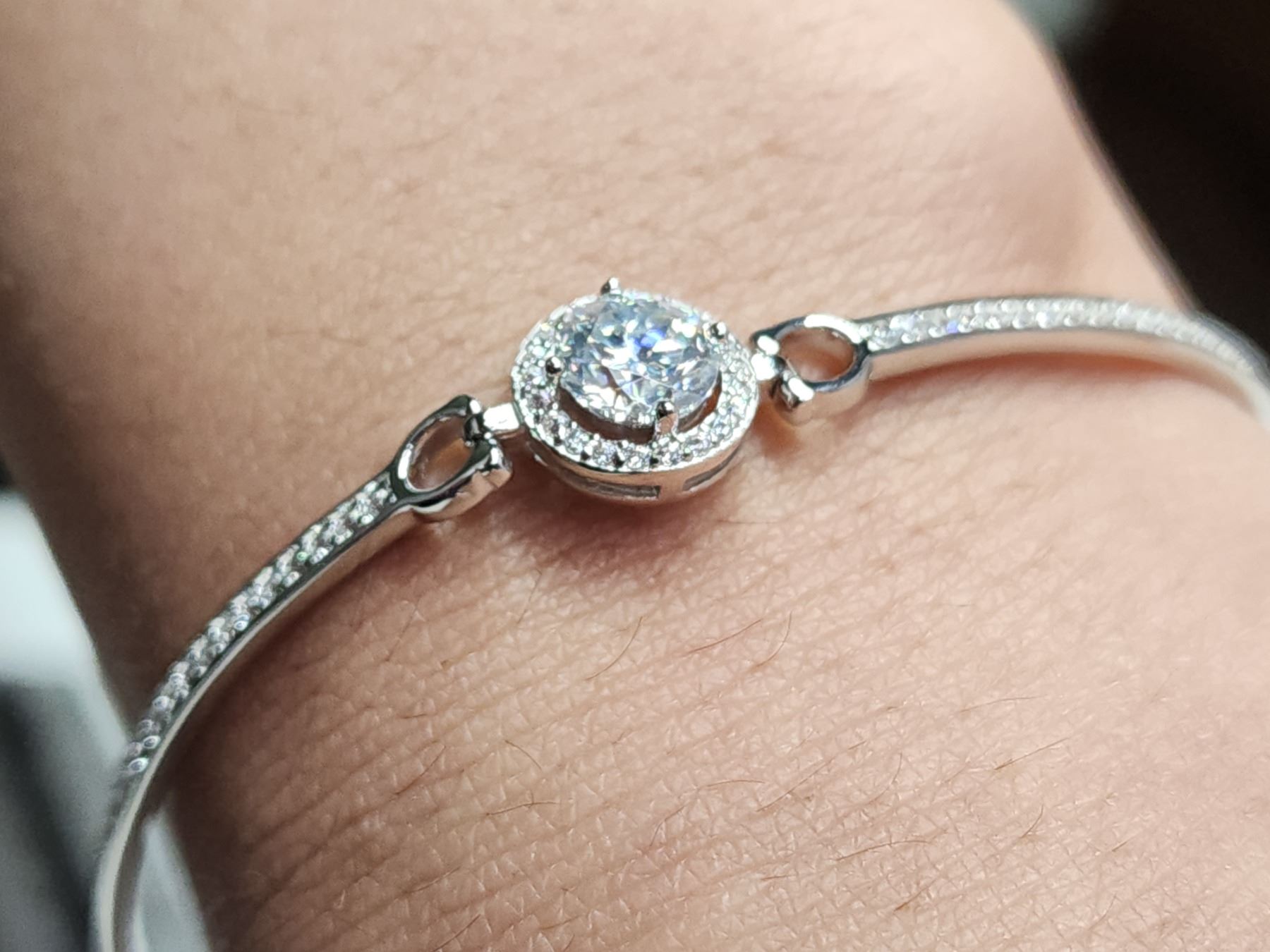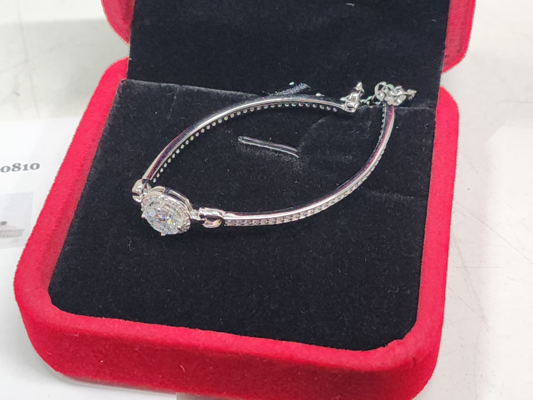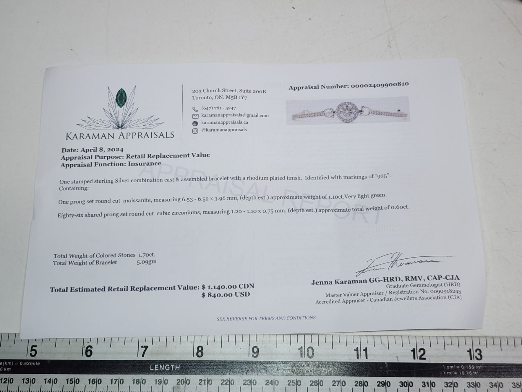 1.10 CT GRA CERTIFIED ROUND BRILLIANT CUT MOISSANITE VVS WITH 86 ROUND CUT CUBIC ZIRCONIUM SET IN ROUND HALO AND IN BRACELET WEIGHING A TOTAL 0.60 CT SET IN 925 SILVER RETAIL VALUE $1,140.00