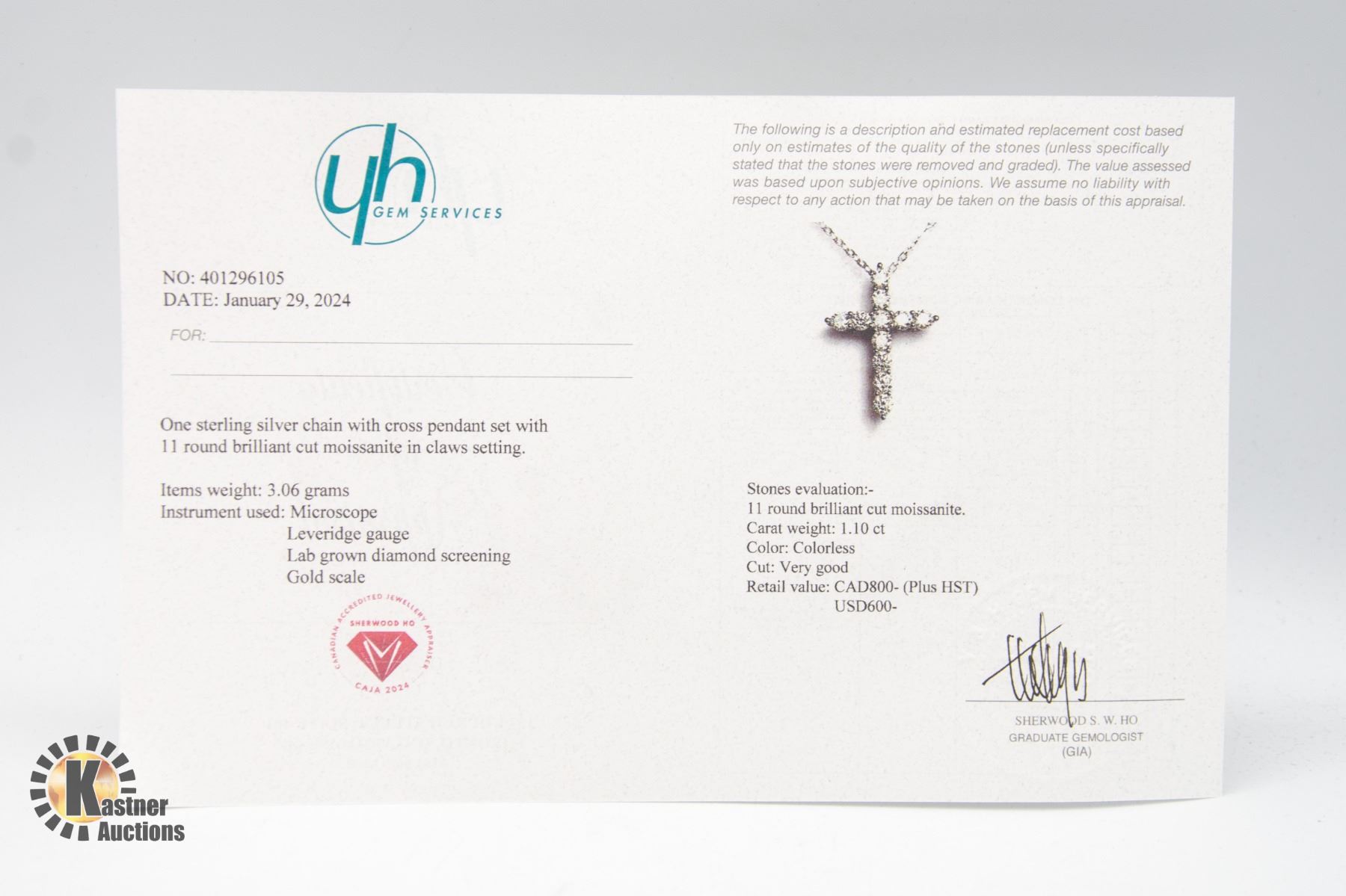 MOISSANITES SET IN CROSS SHAPED STERLING SILVER PENDANT WITH NECKLACE RETAIL VALUE $800.00 **ALL ITEMS MUST BE REMOVED BY 5PM SATURDAY, MARCH 16TH 2024. ALL REMAINING ITEMS WILL BE SUBJECT TO A $6.00 PER DAY STORAGE CHARGE. ANY ITEMS REMAINING AFTER MONDAY, APRIL 8TH, 2023 WILL BE CONSIDERED FORFEITED. NO REFUNDS WILL BE ISSUED FOR FORFEITED ITEMS. TO SCHEDULE A PICK UP APPOINTMENT CLICK HERE