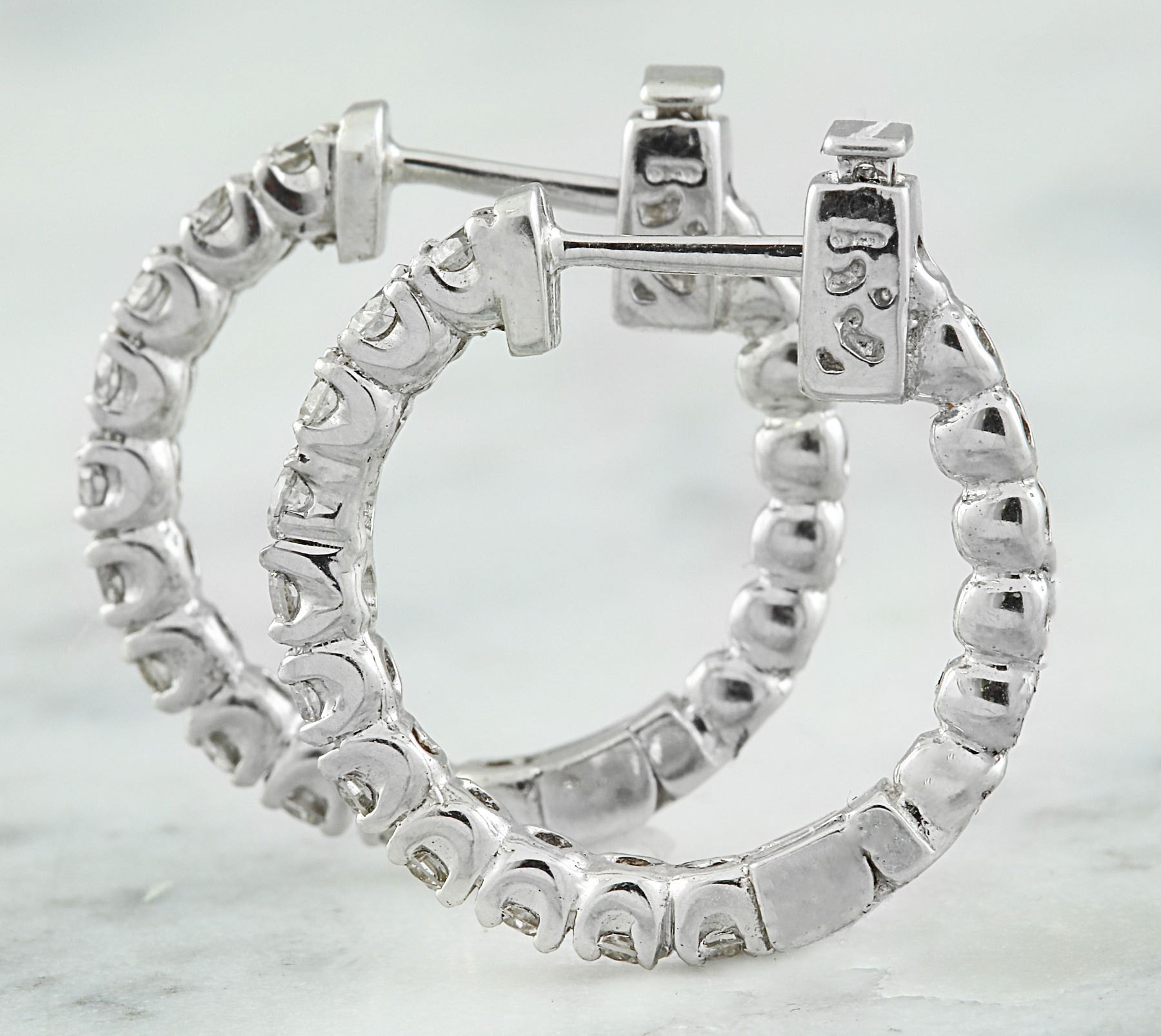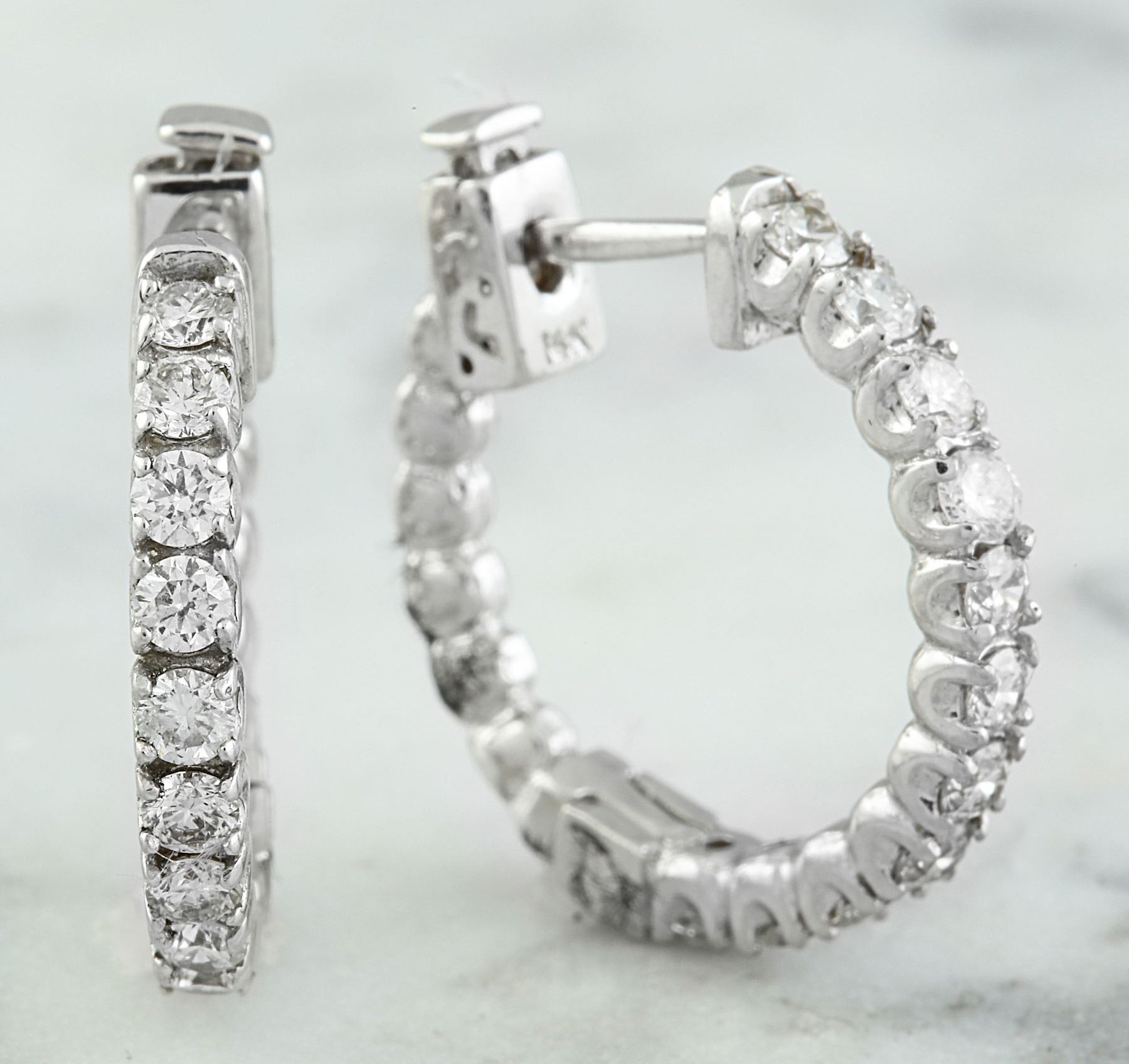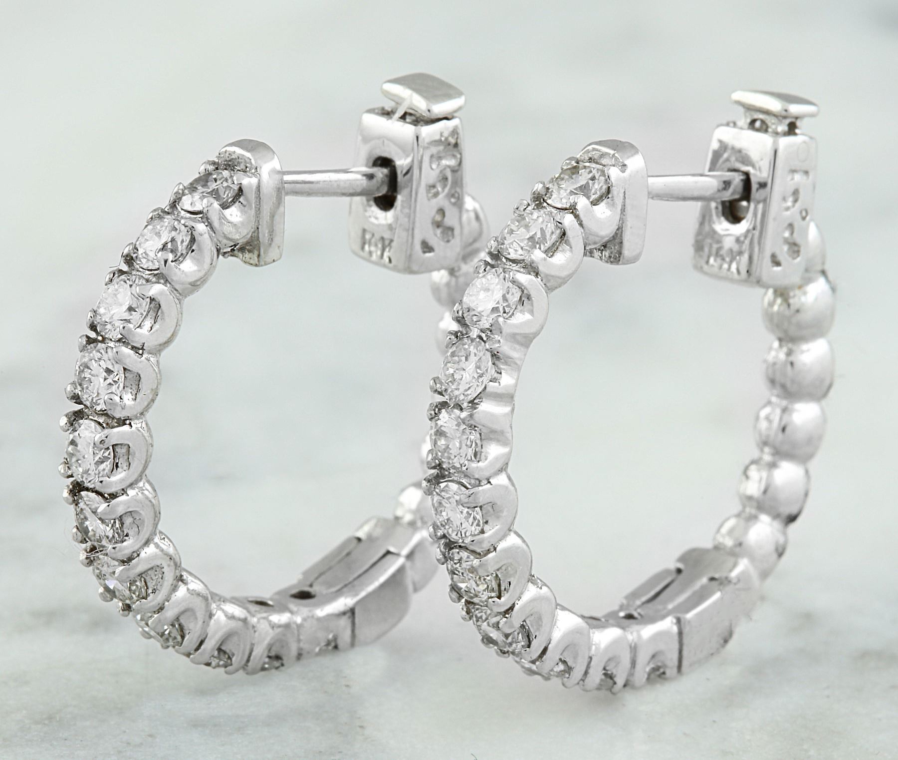 1.10 CTW 18K White Gold Diamond Hoop Earrings