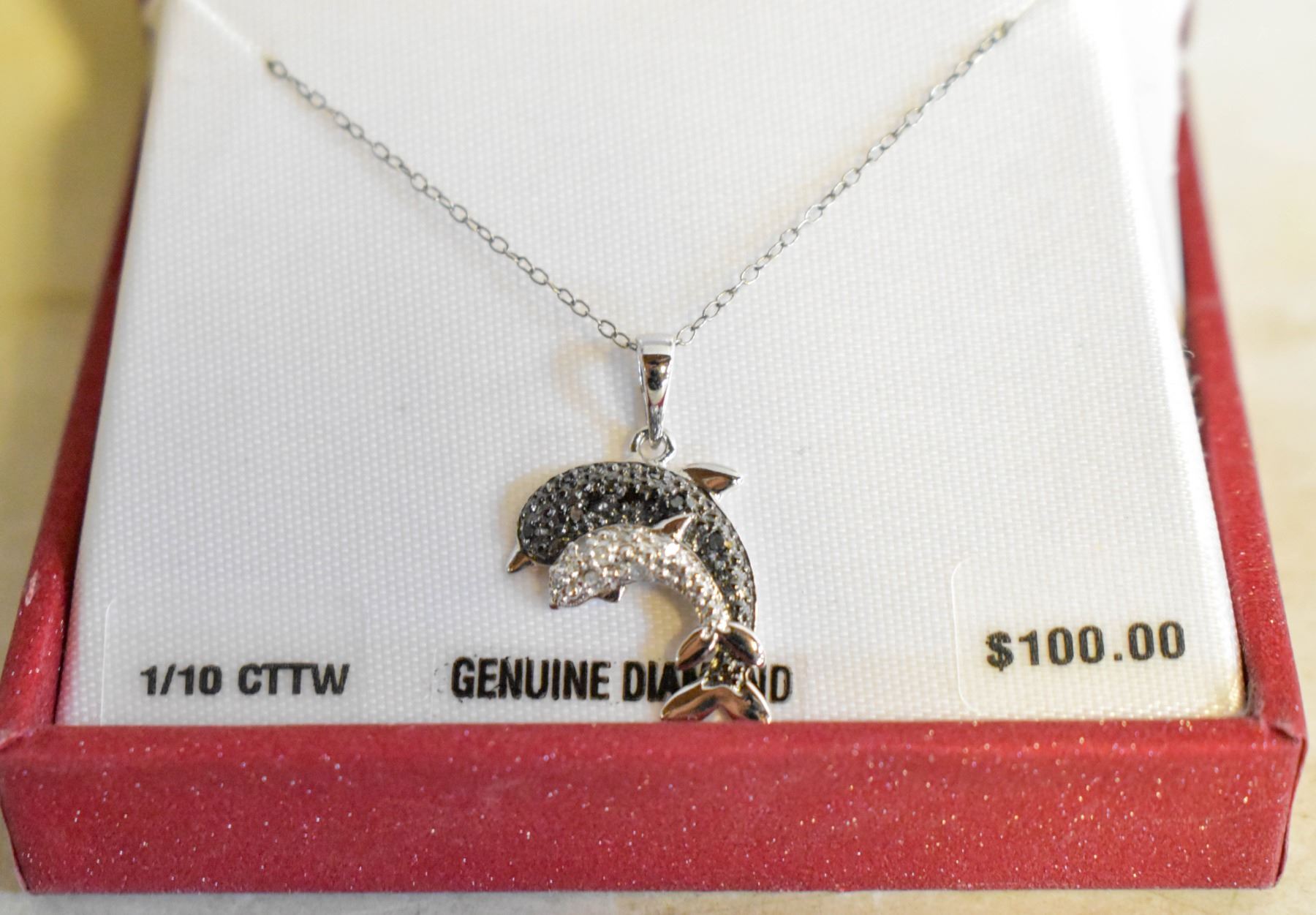 1/10 CTW GENUINE DIAMOND DOLPHIN NECKLACE