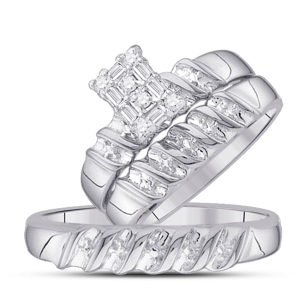 10kt White Gold His & Hers Round Diamond Cluster Matching Bridal Wedding Ring Band Set 1/10 Cttw