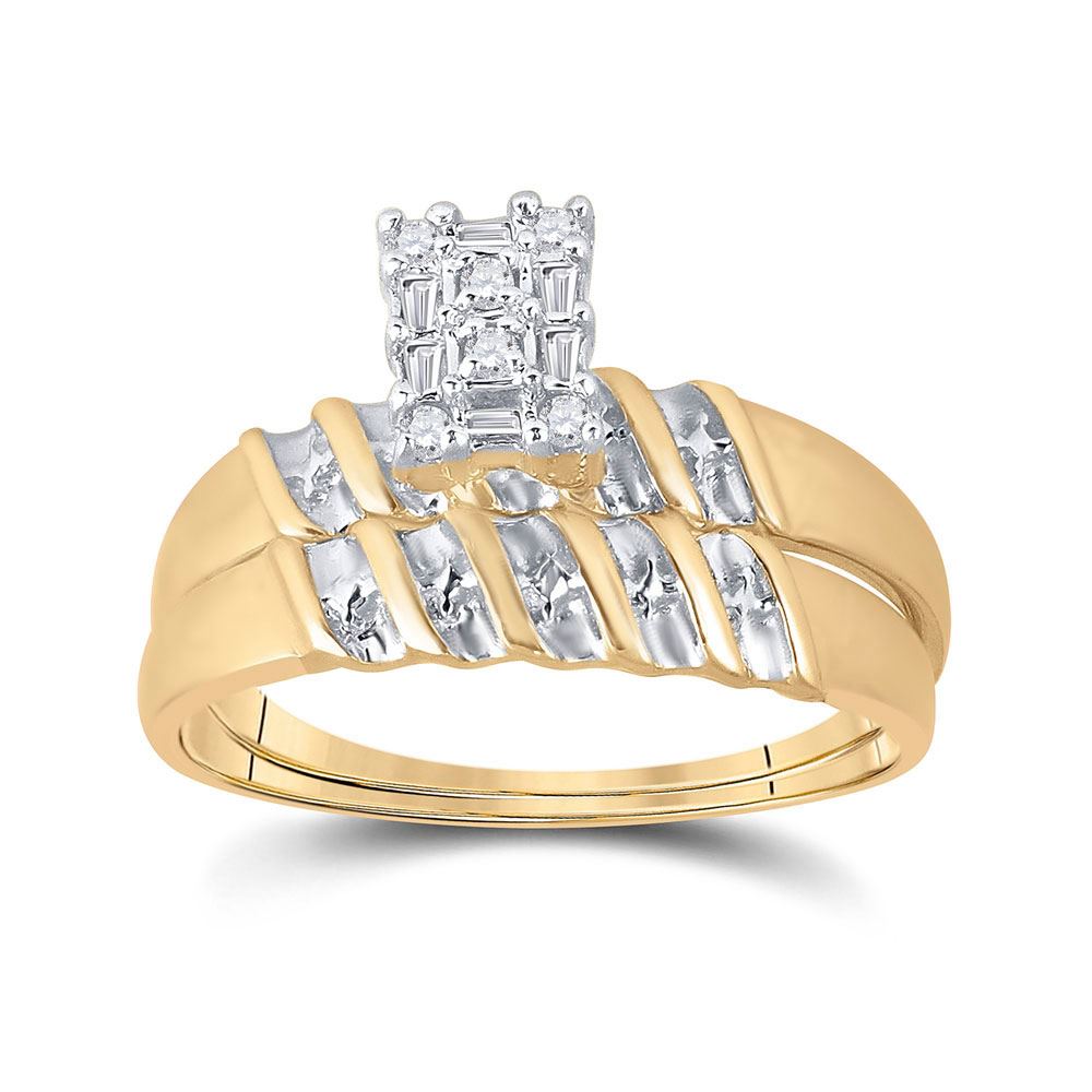 14kt Yellow Gold His & Hers Round Diamond Cluster Matching Bridal Wedding Ring Band Set 1/10 Cttw