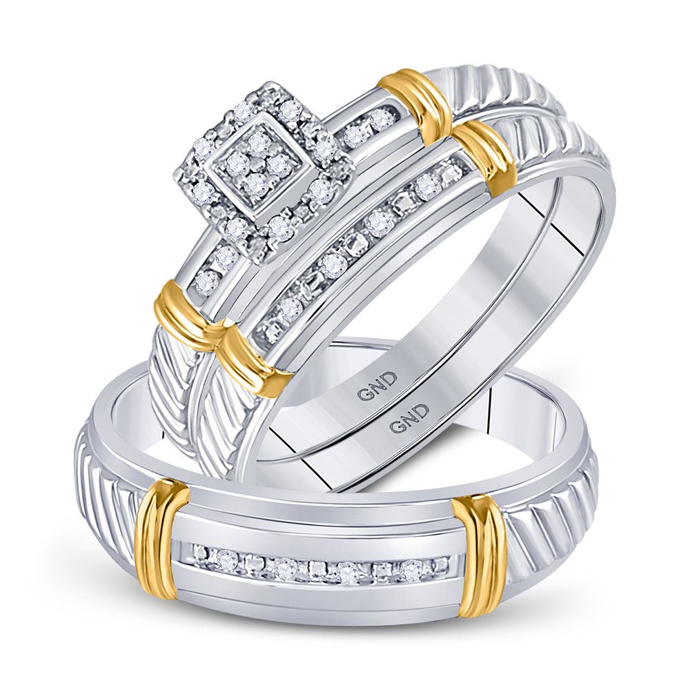 REF-38X2T - 1/10 CTW His Hers Round Diamond Cluster Matching Wedding Set 10kt Two-tone Gold - REF-38X2T