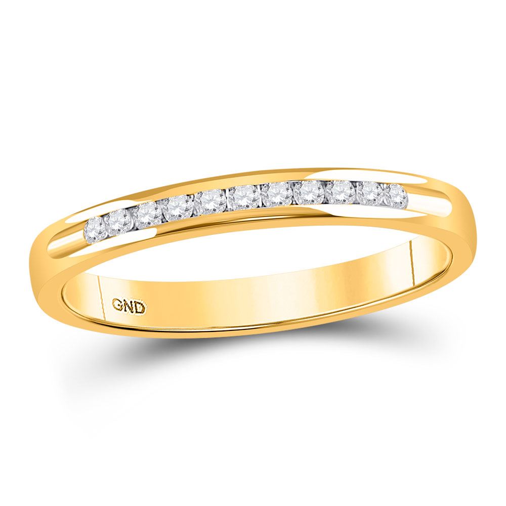 14kt Yellow Gold Womens Machine Set Round Diamond Wedding Channel Band 1/10 Cttw