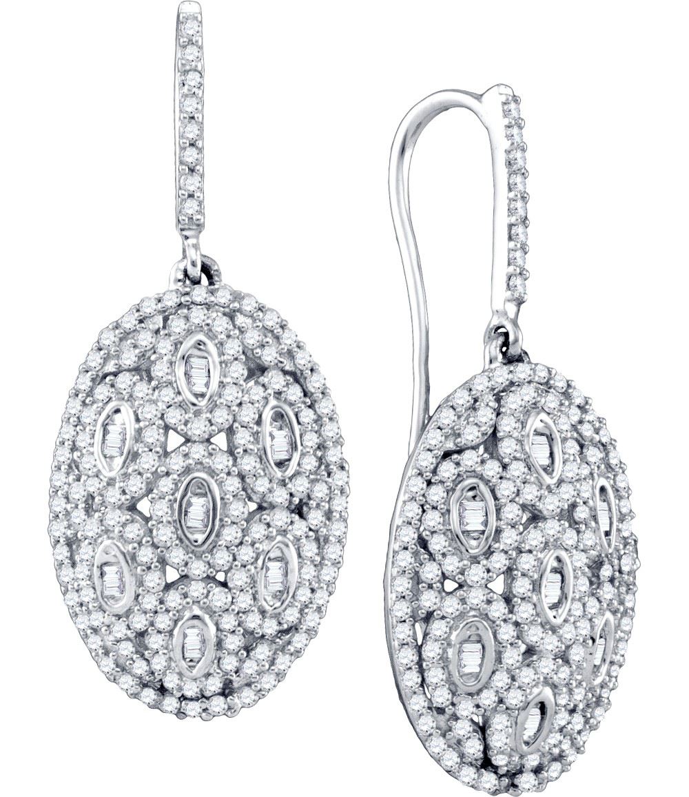 REF-109F8M ---- 1.10 CTW Natural Diamond Dangle Oval Cluster Earrings 10K White Gold - SKU: GD72176