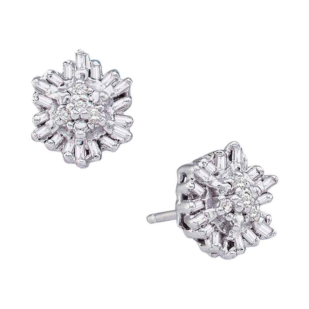 REF-14Y4X ---- 1/10 CTW Round Baguette Diamond Cluster Stud Earrings 14kt White Gold