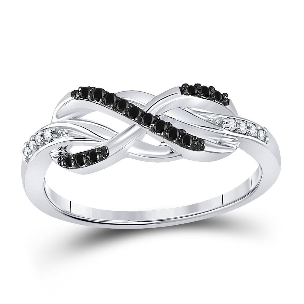 10kt White Gold Womens Round Black Color Enhanced Diamond Infinity Ring 1/10 Cttw