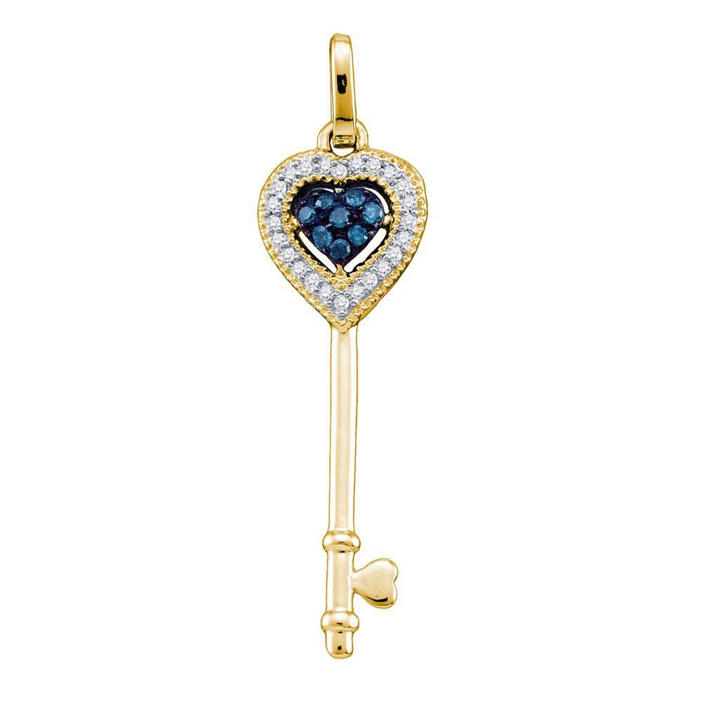 10kt Yellow Gold Womens Round Blue Color Enhanced Diamond Key Love Pendant 1/10 Cttw