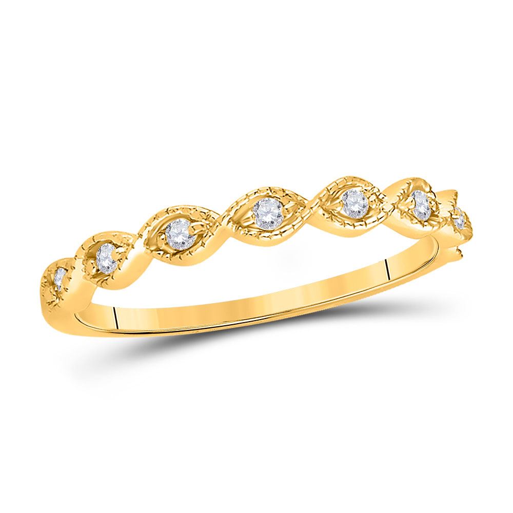 14kt Yellow Gold Womens Round Diamond Classic Stackable Band Ring 1/10 Cttw