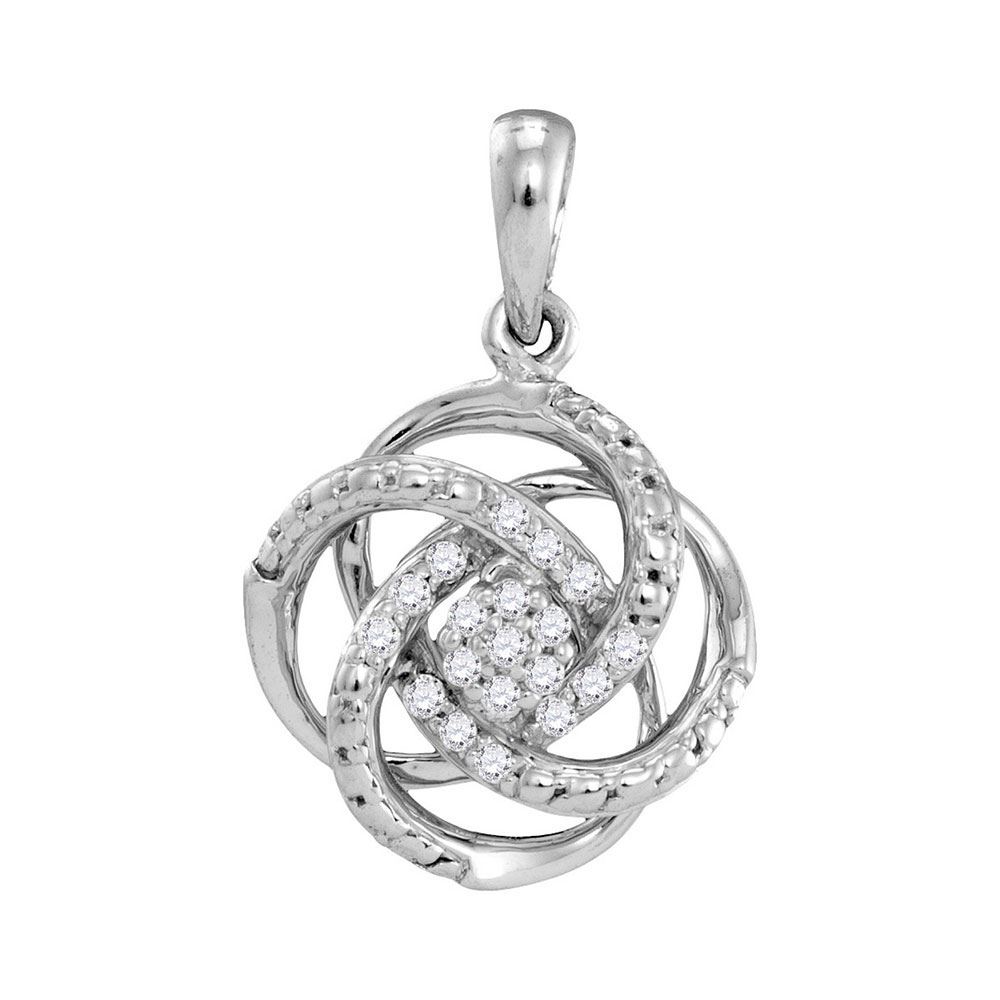 10kt White Gold Womens Round Diamond Cluster Pendant 1/10 Cttw