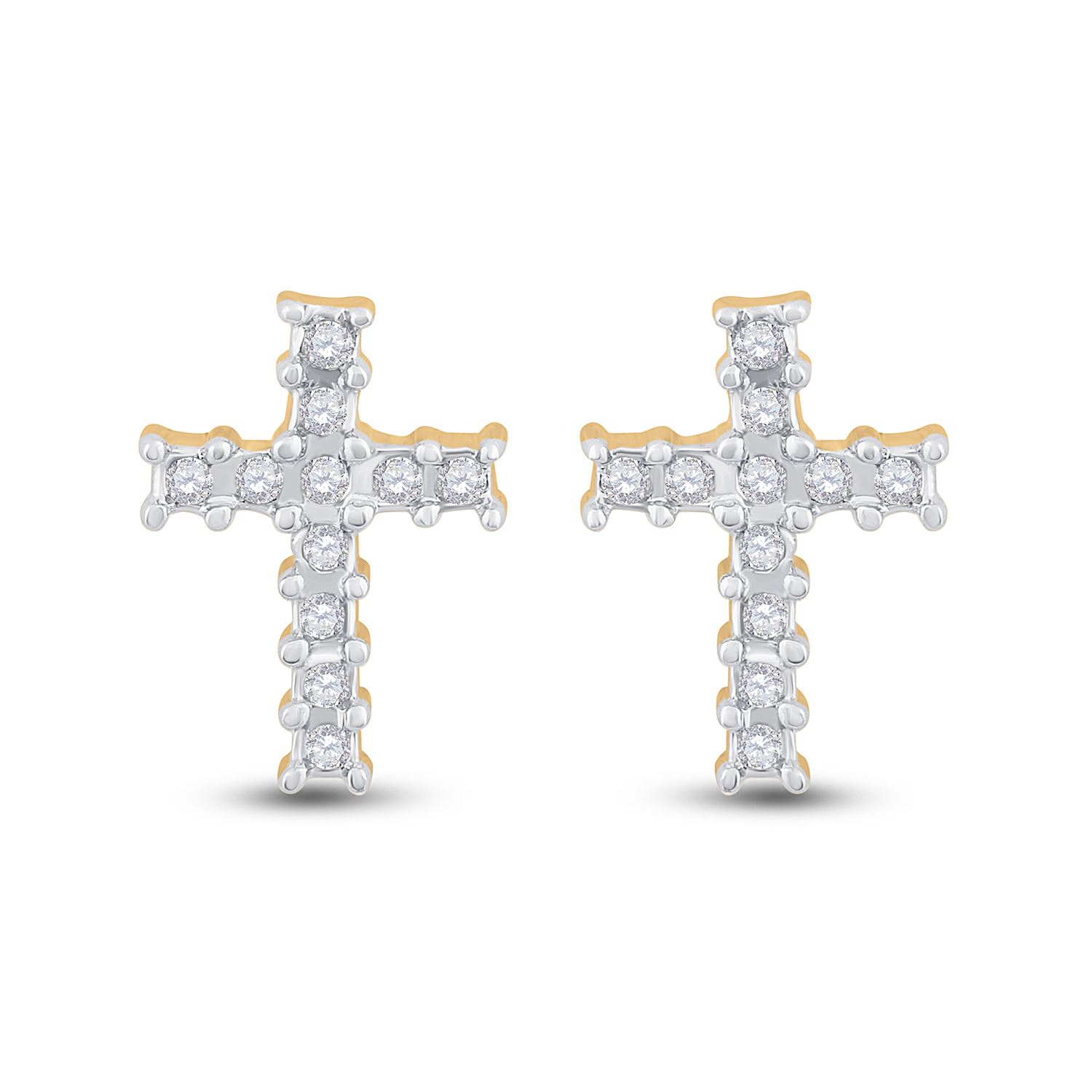REF-11R9H ---- 1/10 CTW Round Diamond Cross Earrings 10kt Yellow Gold