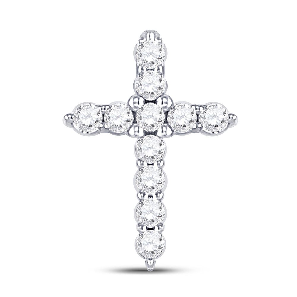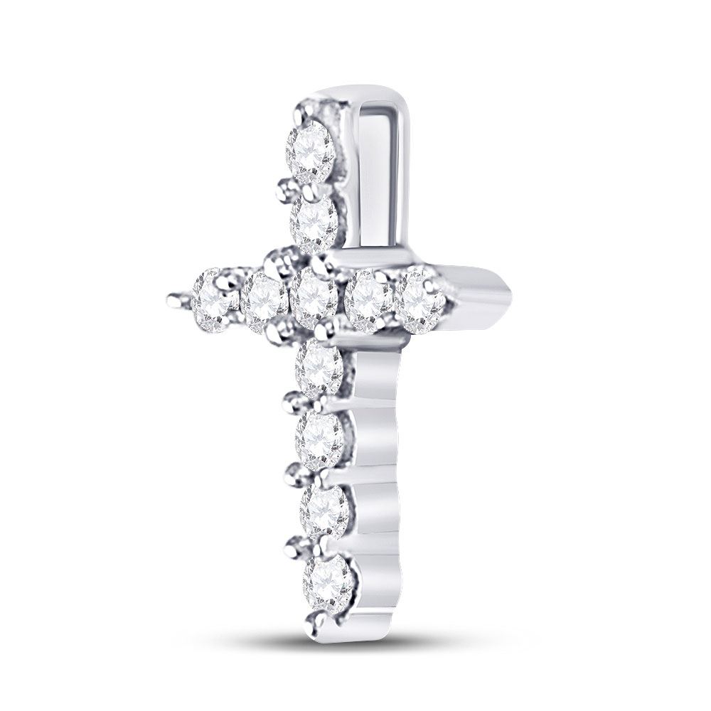 10kt White Gold Womens Round Diamond Classic Cross Pendant 1/10 Cttw
