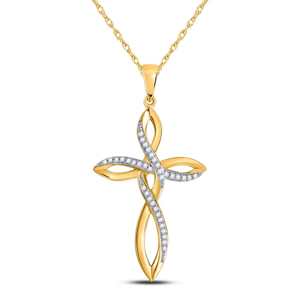 10kt Yellow Gold Womens Round Diamond Cross Faith Pendant 1/10 Cttw