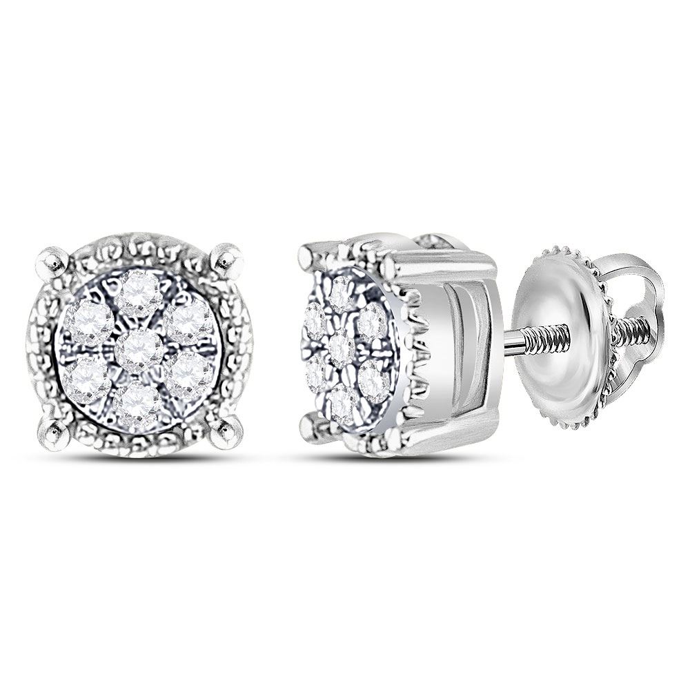 10kt White Gold Womens Round Diamond Flower Cluster Milgrain Stud Earrings 1/10 Cttw