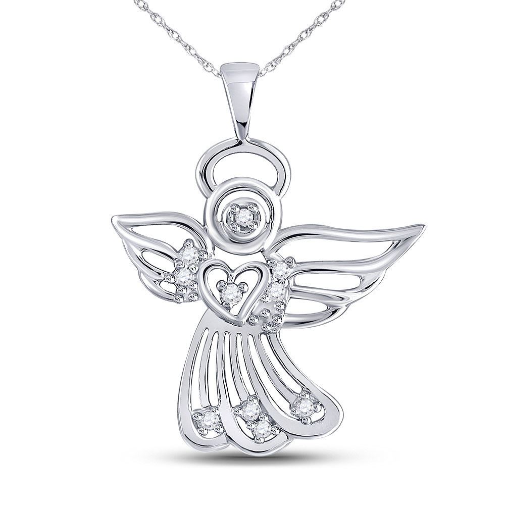 10kt White Gold Womens Round Diamond Guardian Angel Pendant 1/10 Cttw