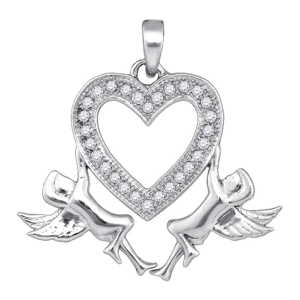 10kt White Gold Womens Round Diamond Heart Angel Cherub Pendant 1/10 Cttw
