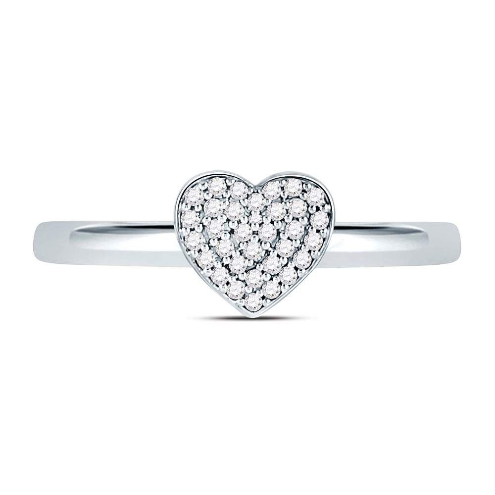 10kt White Gold Womens Round Diamond Heart Cluster Ring 1/10 Cttw