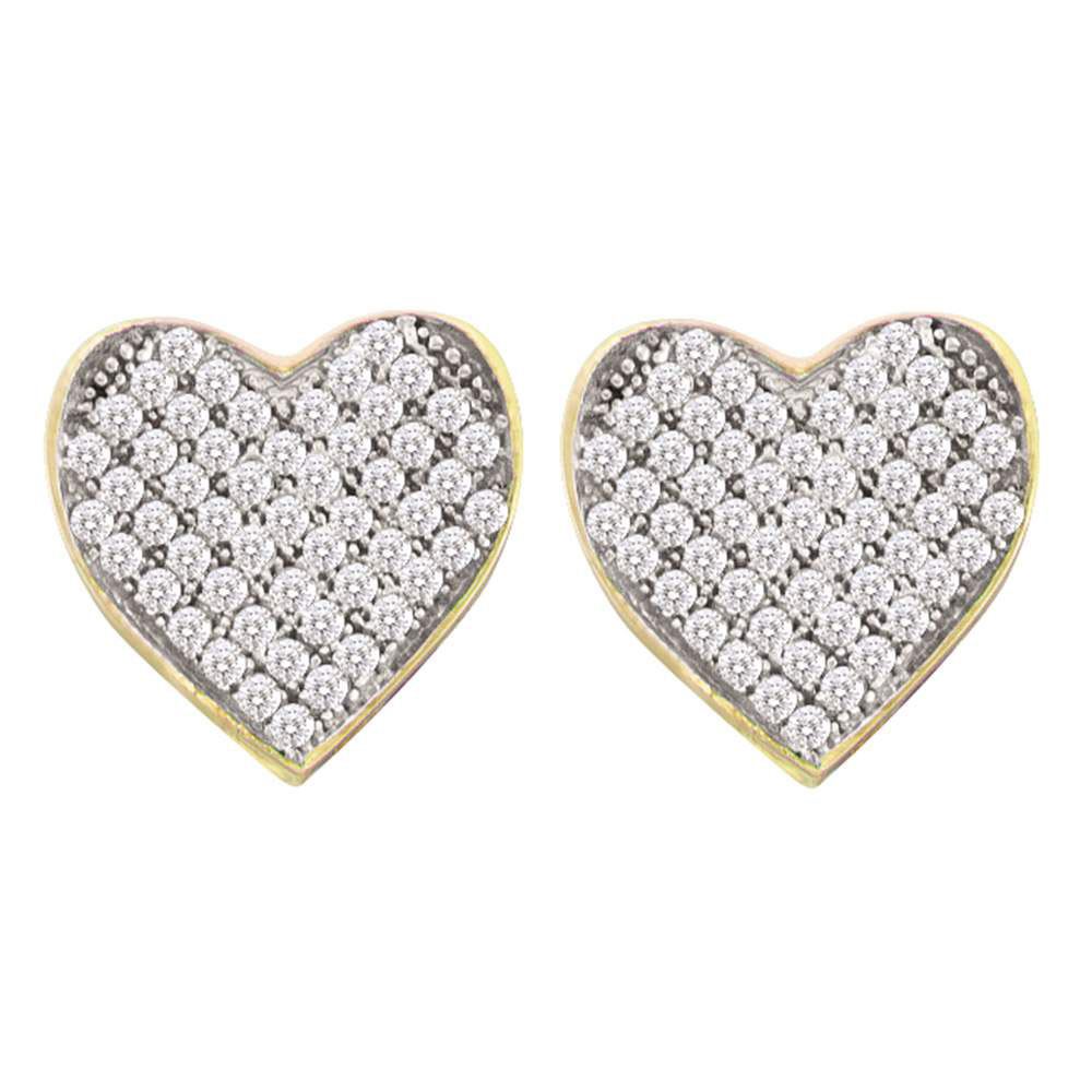 10kt Yellow Gold Womens Round Diamond Heart Cluster Screwback Earrings 1/10 Cttw