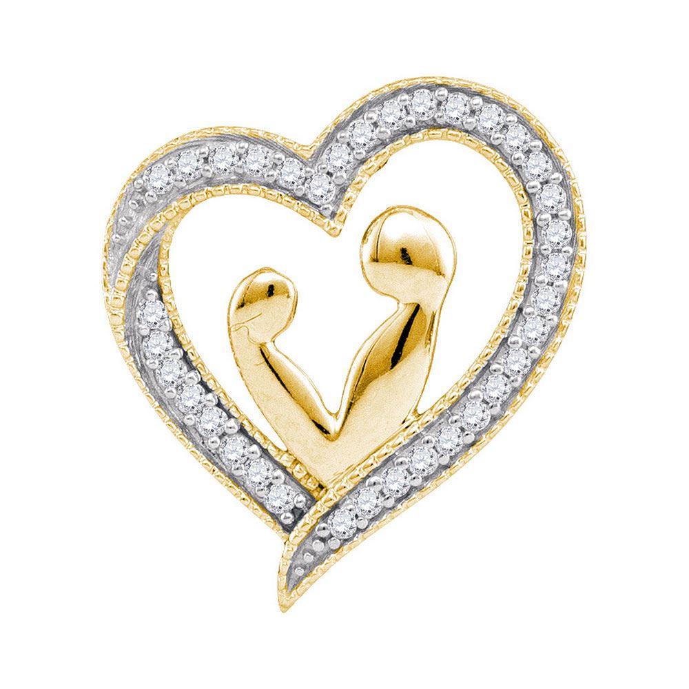10kt Yellow Gold Womens Round Diamond Heart Mother Child Embrace Pendant 1/10 Cttw