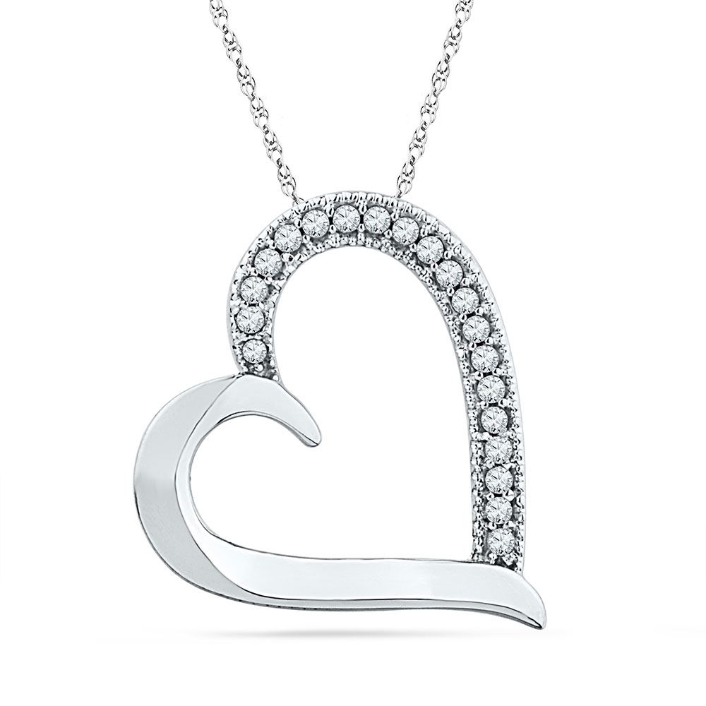10kt White Gold Womens Round Diamond Heart Outline Pendant 1/10 Cttw