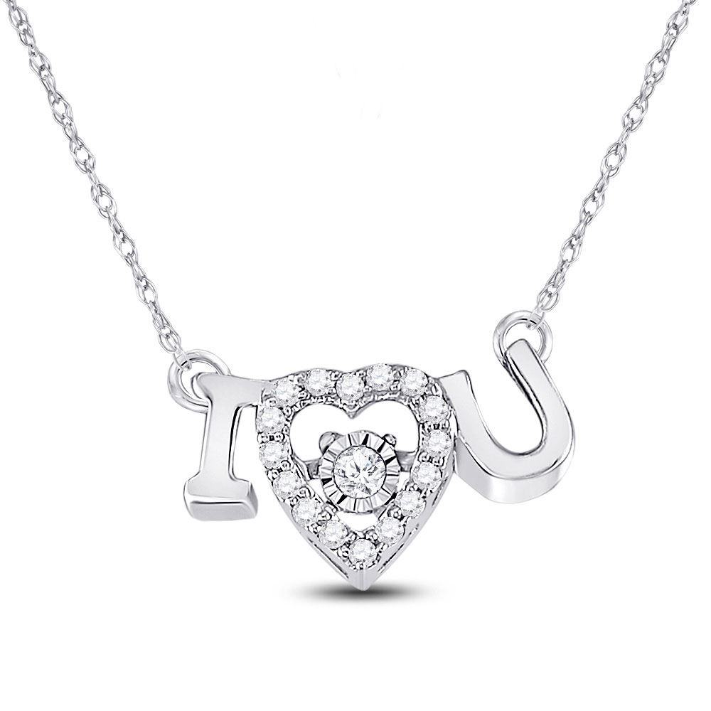 14kt White Gold Womens Round Diamond I Love U Heart Pendant Necklace 1/10 Cttw