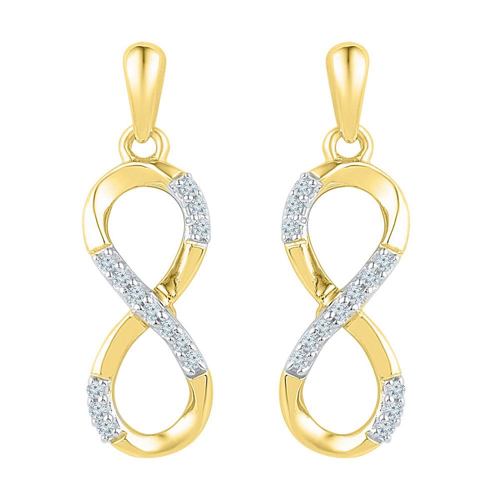 10k Yellow Gold Womens Round Diamond Infinity Dangle Screwback Earrings 1/10 Cttw
