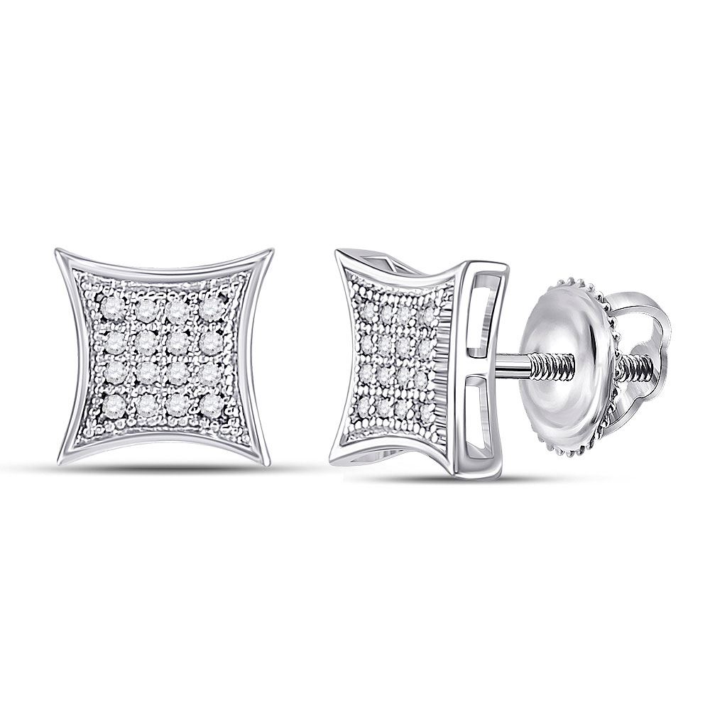10kt White Gold Womens Round Diamond Square Kite Cluster Earrings 1/10 Cttw