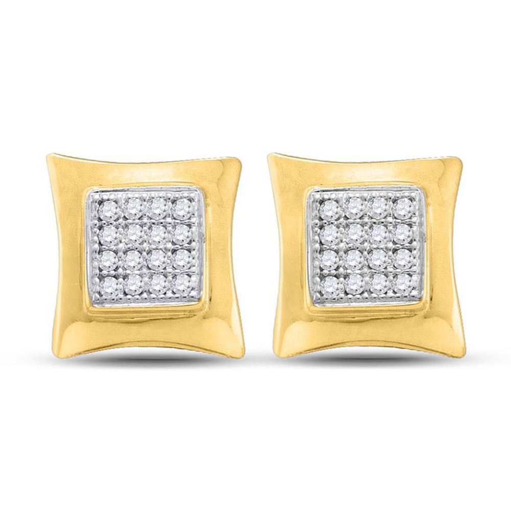 10kt Yellow Gold Womens Round Diamond Square Kite Cluster Screwback Earrings 1/10 Cttw