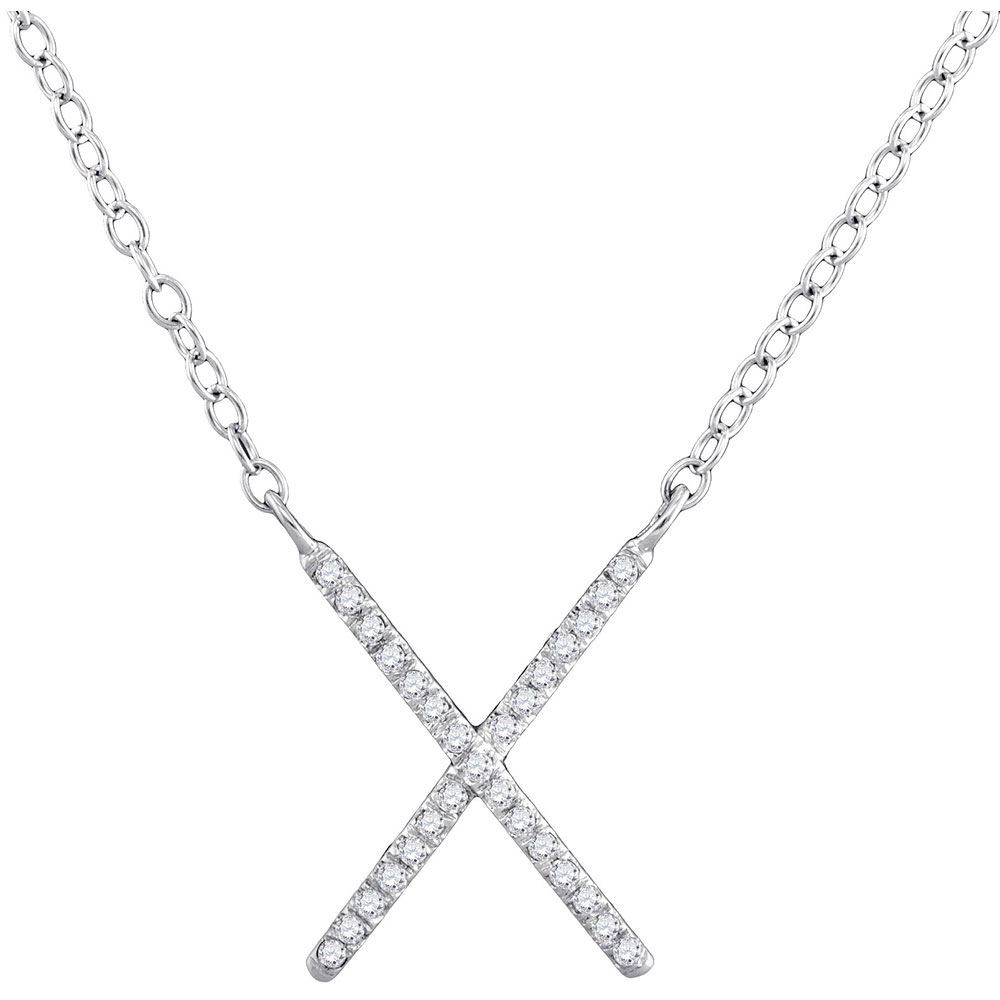 10kt White Gold Womens Round Diamond Letter X Cross Pendant Necklace 1/10 Cttw