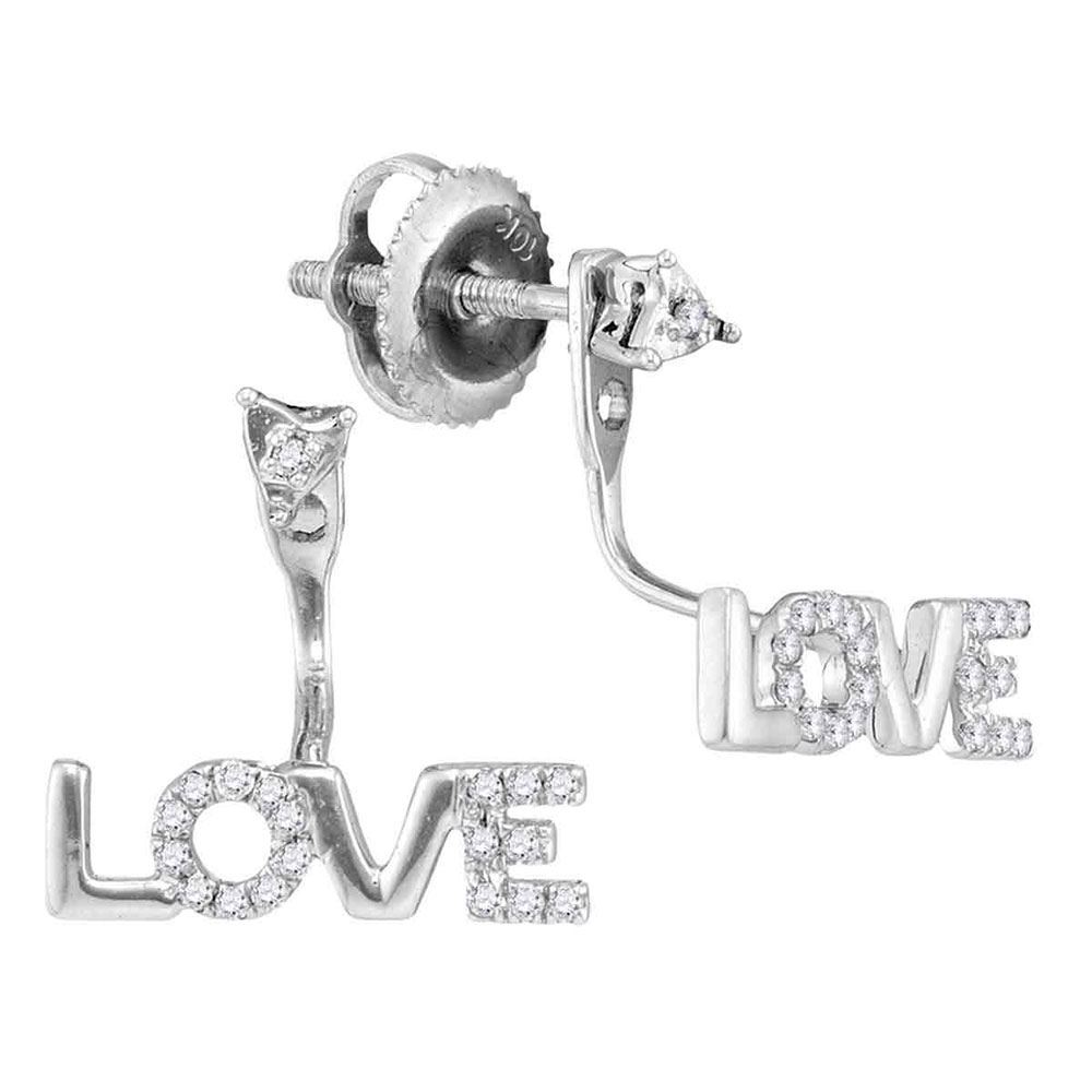 REF-9F6M ---- 1/10 CTW Round Diamond Love Stud Jacket Earrings 10kt White Gold
