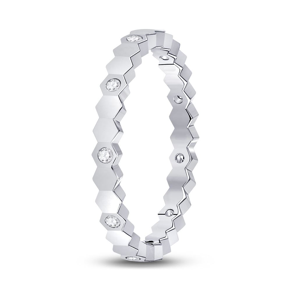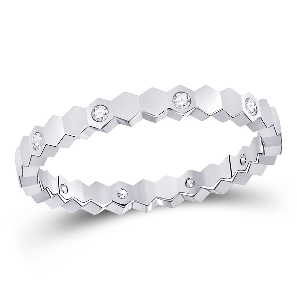 14kt White Gold Womens Round Diamond Machine-Set Band Ring 1/10 Cttw