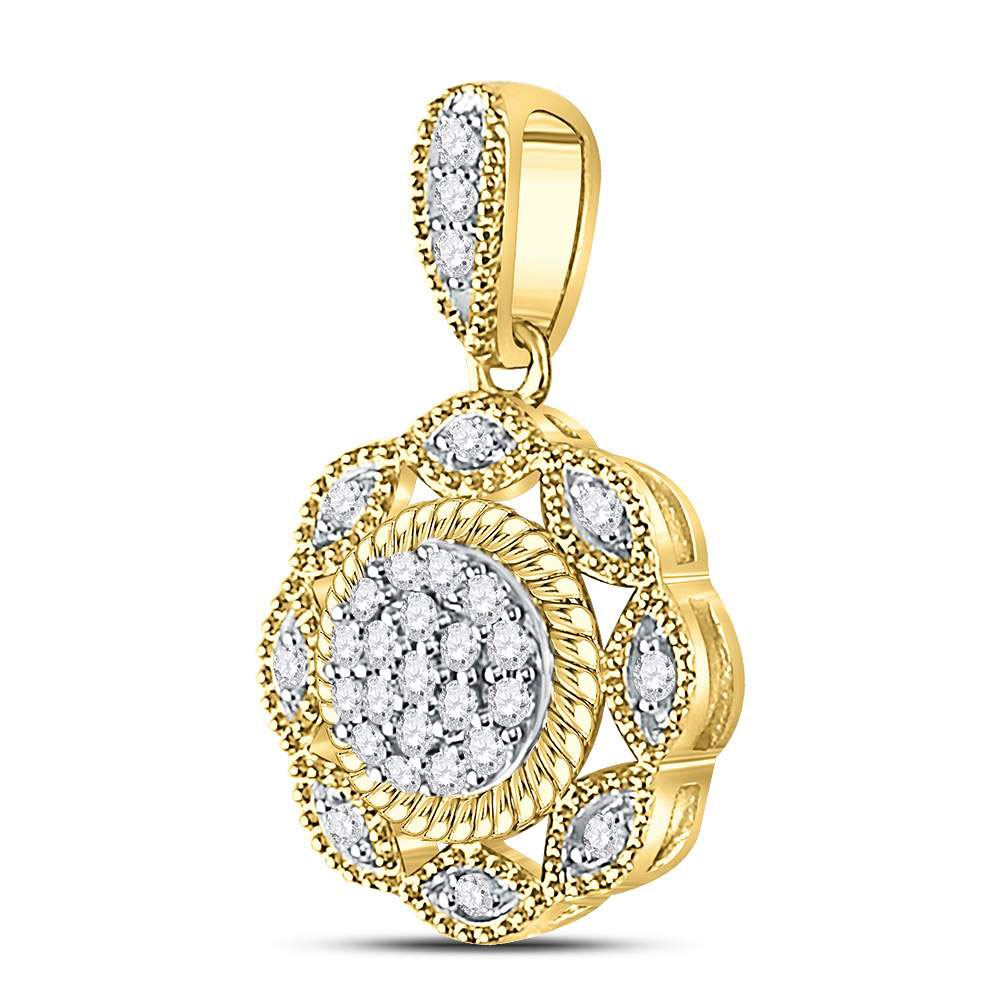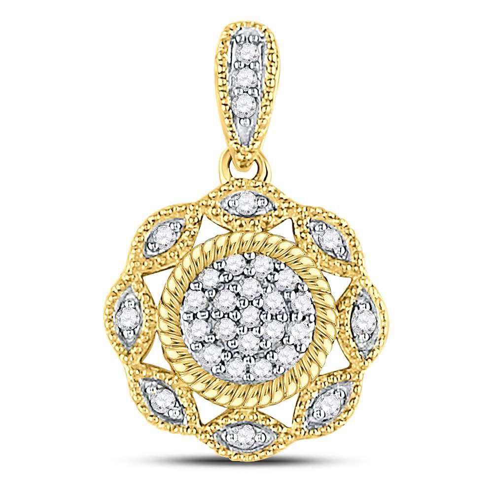 10kt Yellow Gold Womens Round Diamond Milgrain Rope Cluster Pendant 1/10 Cttw