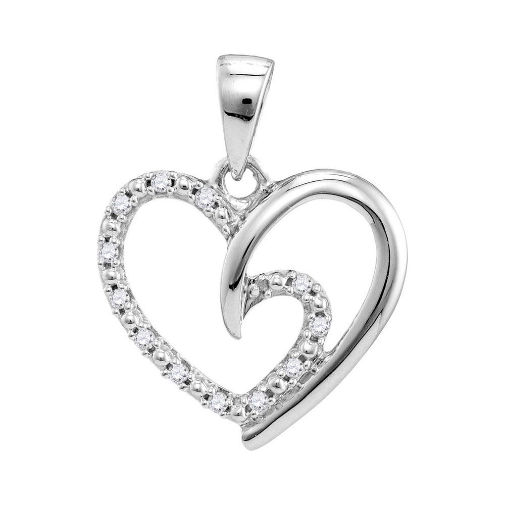 10kt White Gold Womens Round Diamond Small Heart Pendant 1/10 Cttw