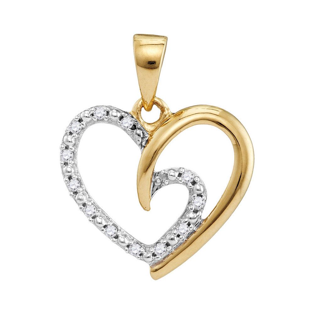 10kt Yellow Gold Womens Round Diamond Small Heart Pendant 1/10 Cttw