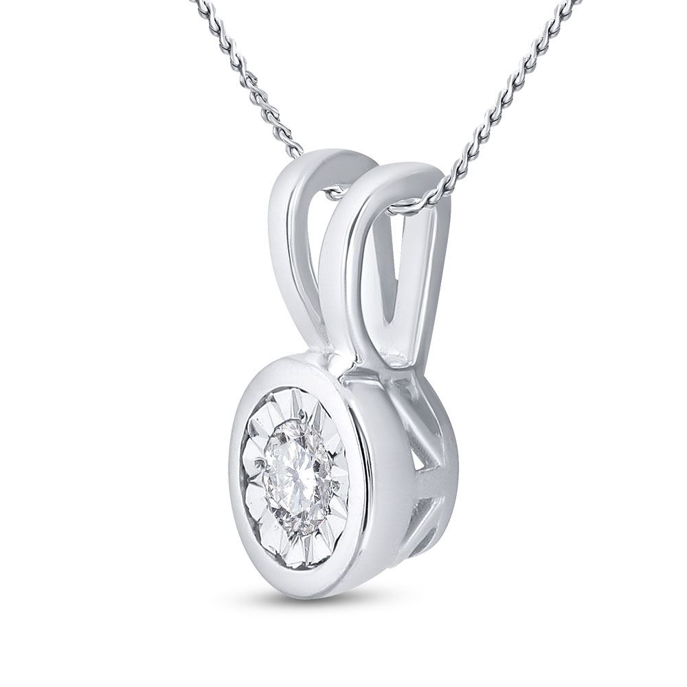 10kt White Gold Womens Round Diamond Solitaire Faceted Framed Pendant 1/10 Cttw