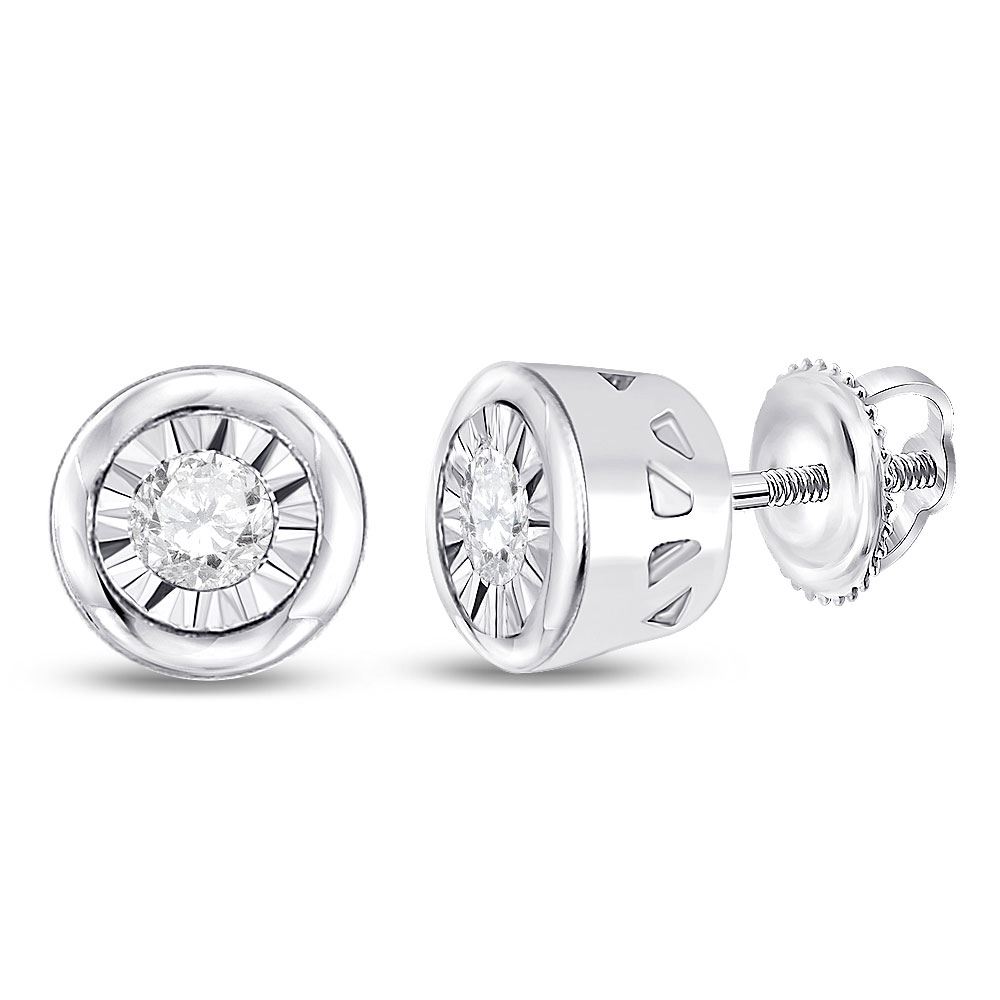 10kt White Gold Womens Round Diamond Solitaire Stud Earrings 1/10 Cttw