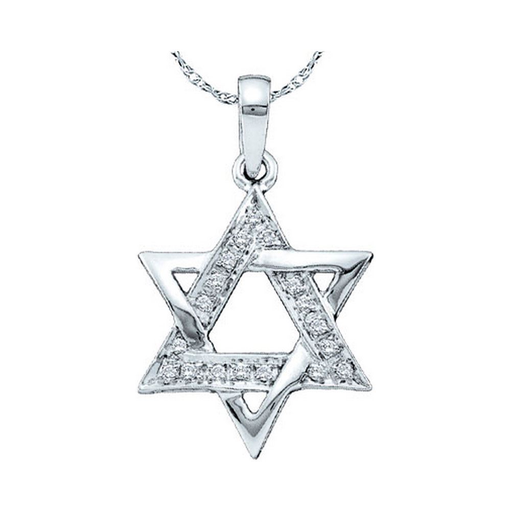 REF-11W9F ---- 1/10 CTW Round Diamond Star Magen David Jewish Pendant 10kt White Gold