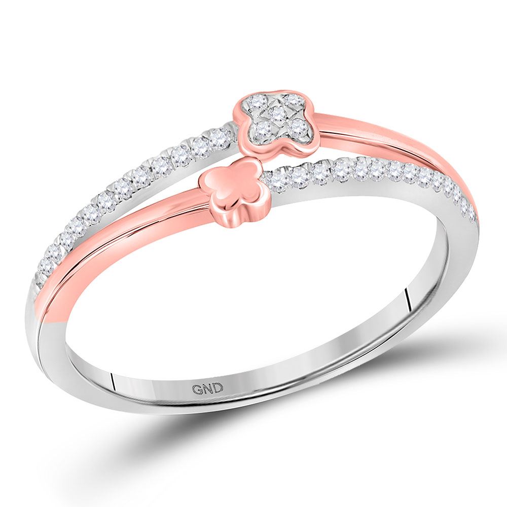 10kt White Gold Womens Round Diamond Two Row Quatrefoil Band Ring 1/10 Cttw